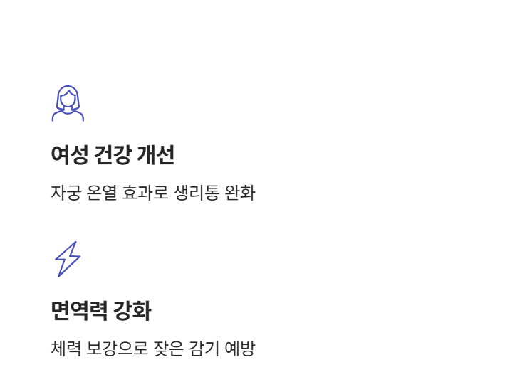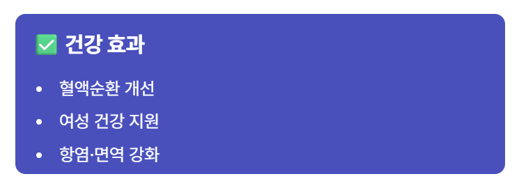 첫 번째는 건강 효과입니다. 혈액순환과 여성 건강입니다.