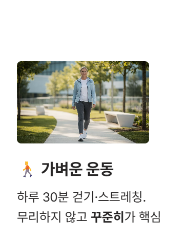 하루 30분 정도의 걷기나 스트레칭은 스트레스를 줄이고 호르몬 분비를 도와줍니다. 너무 격렬한 운동은 오히려 피로를 가중시킬 수 있으니, 무리하지 않는 선에서 꾸준히 하는 게 핵심입니다.
