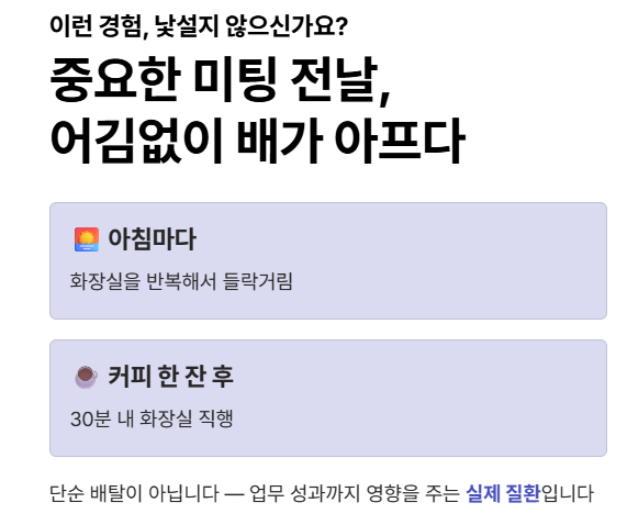 중요한 회의 중에 배에서 꼬르륵 소리가 나는 경험, 해보셨나요? 저는 장이 약해서 이런 상황이 자주 반복됩니다. 더 곤혹스러운 건 방귀를 뀌어도 전혀 시원하지 않을 때예요. 경험상 그런 날은