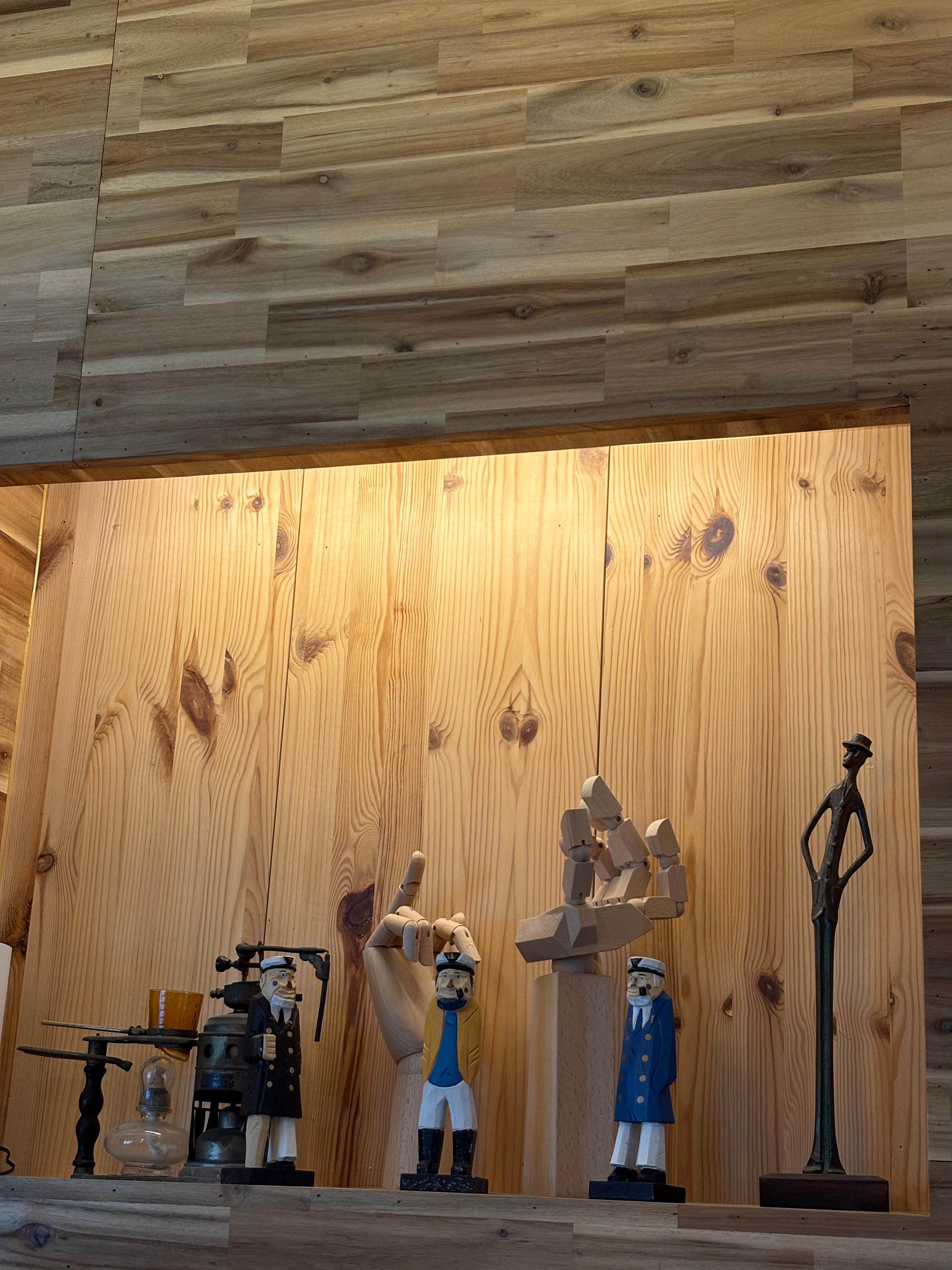 이날 너무 더워서 그런지, 저희 가족은 내부에만 있었는데요. 날씨가 풀리면 야외 테라스에서 햇빛을 받으면서 앉아있기에 좋을 것 같았어요. 저는 개인적으로, 사장님의 독특한 인형들이 너무 귀여웠답니다. 호두까기 인형같은 목조인형이 있었는데, 참 다양하게 진열되어 있었어요.