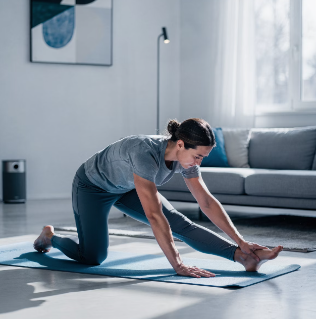 2단계 고관절 스트레칭으로 유연성을 확보합니다.