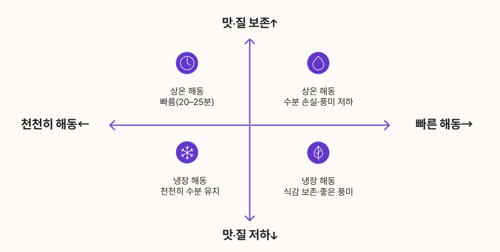 일부에서는 냉장 해동을 하면 식감이 더 유지된다는 의견도 있어요.