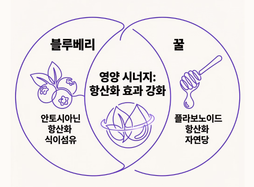 단순히 맛뿐만 아니라 영양적인 측면에서도 괜찮은 조합이에요. 블루베리에는 안토시아닌이라는 항산화 성분이 풍부하고, 꿀에는 플라보노이드 같은 항산화 물질이 들어 있어요. 함께 섭취하면 시너지 효과를 기대할 수 있다는 의견도 있어요.