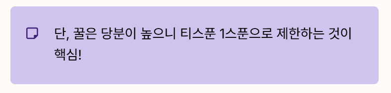 다만 꿀은 당분이 높기 때문에 과다 섭취는 피하는 것이 중요해요. 저는 티스푼 한 스푼 정도로 양을 제한해서 먹고 있어요. 맛을 보완하는 수준으로 사용하는 것이 가장 현실적인 방법이라고 생각해요.