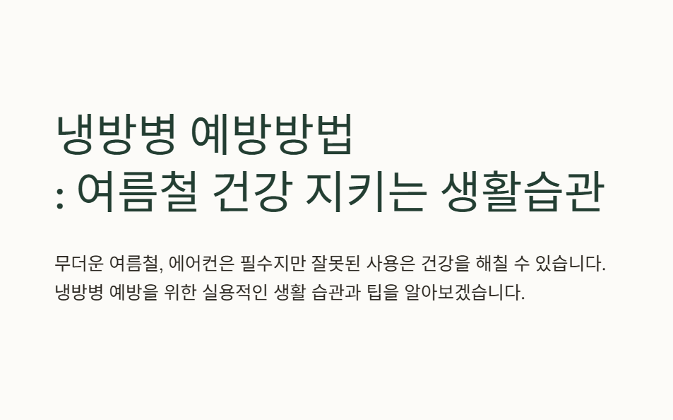 정리하자면, 냉방병은 단순히 운이 나빠서 걸리는 것이 아니라 생활 습관에서 비롯됩니다. 적절한 온도 유지, 환기, 간접 냉방, 체온 보호, 에어컨 청소, 그리고 올바른 건강 습관만 지켜도 충분히 예방할 수 있습니다. 올여름에는 시원함과 건강을 동시에 챙기며 무더위를 슬기롭게 이겨내시길 바랍니다.