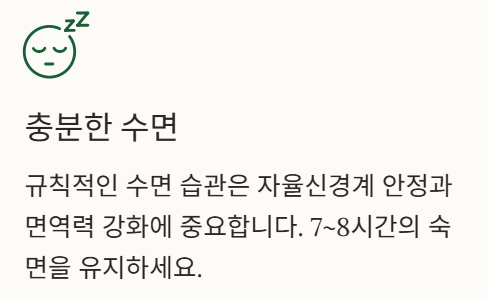 마지막으로는 개인의 건강 습관입니다. 충분한 수분 섭취와 균형 잡힌 식사를 통해 자율신경계를 안정시키는 것이 필요합니다. 땀을 많이 흘린 뒤에는 미네랄이 포함된 음료를 마시고, 신선한 과일과 채소를 섭취하면 면역력을 유지하는 데 도움이 됩니다. 가벼운 스트레칭이나 산책도 혈액순환을 도와 냉방병 예방에 효과적입니다.