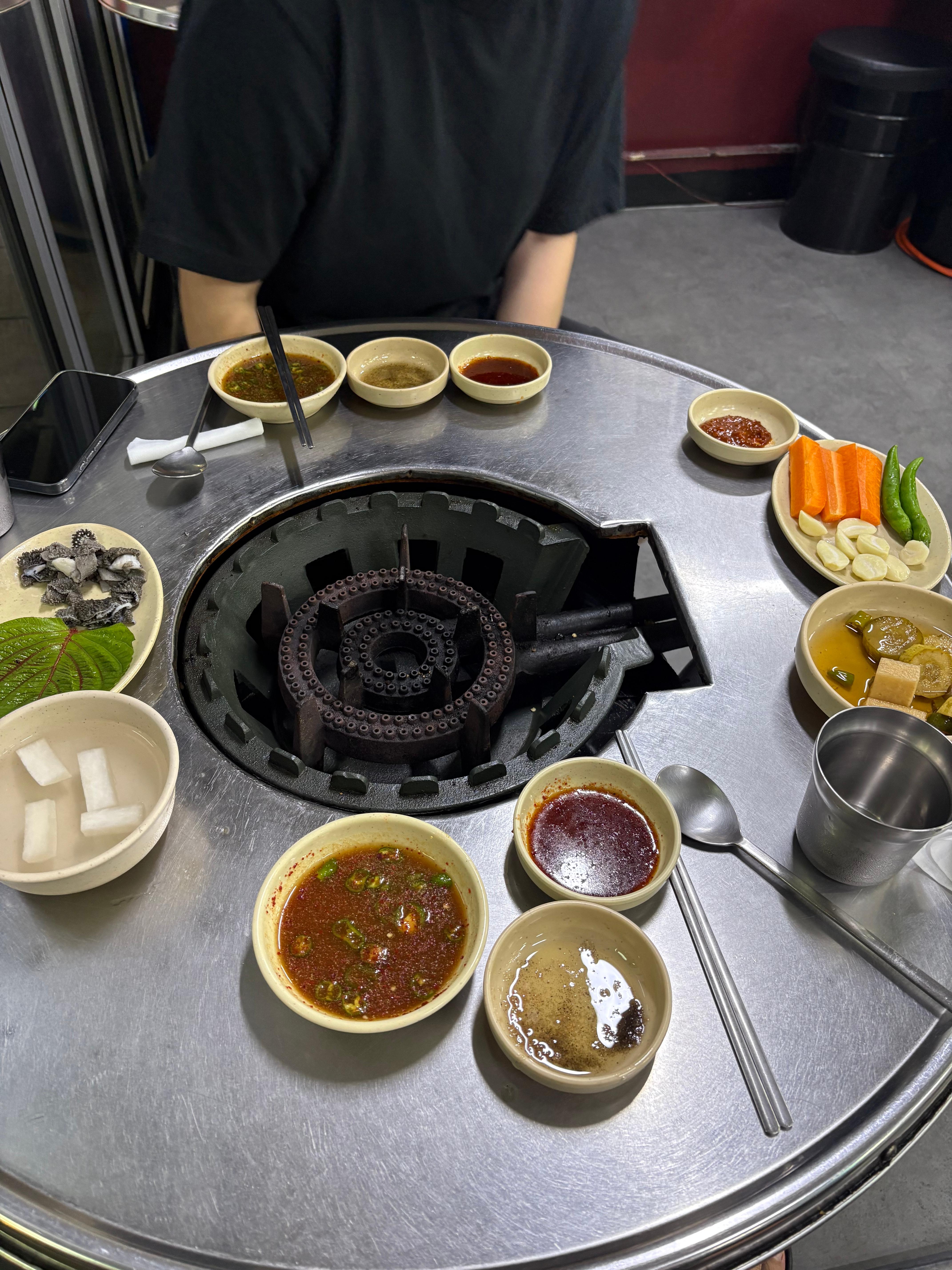 메뉴 주문시 천엽과 생간을 주는데요. 저는 생간을 뇸뇸해서 먹고, 회장님께서는 불판에 천엽을 구어서 먹었지요. (맛잘알!)