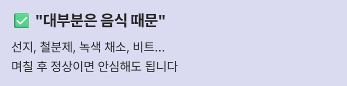 - 색이 달라졌을 때 음식·영양제 확인 후 며칠 지나도 지속되면 병원으로
