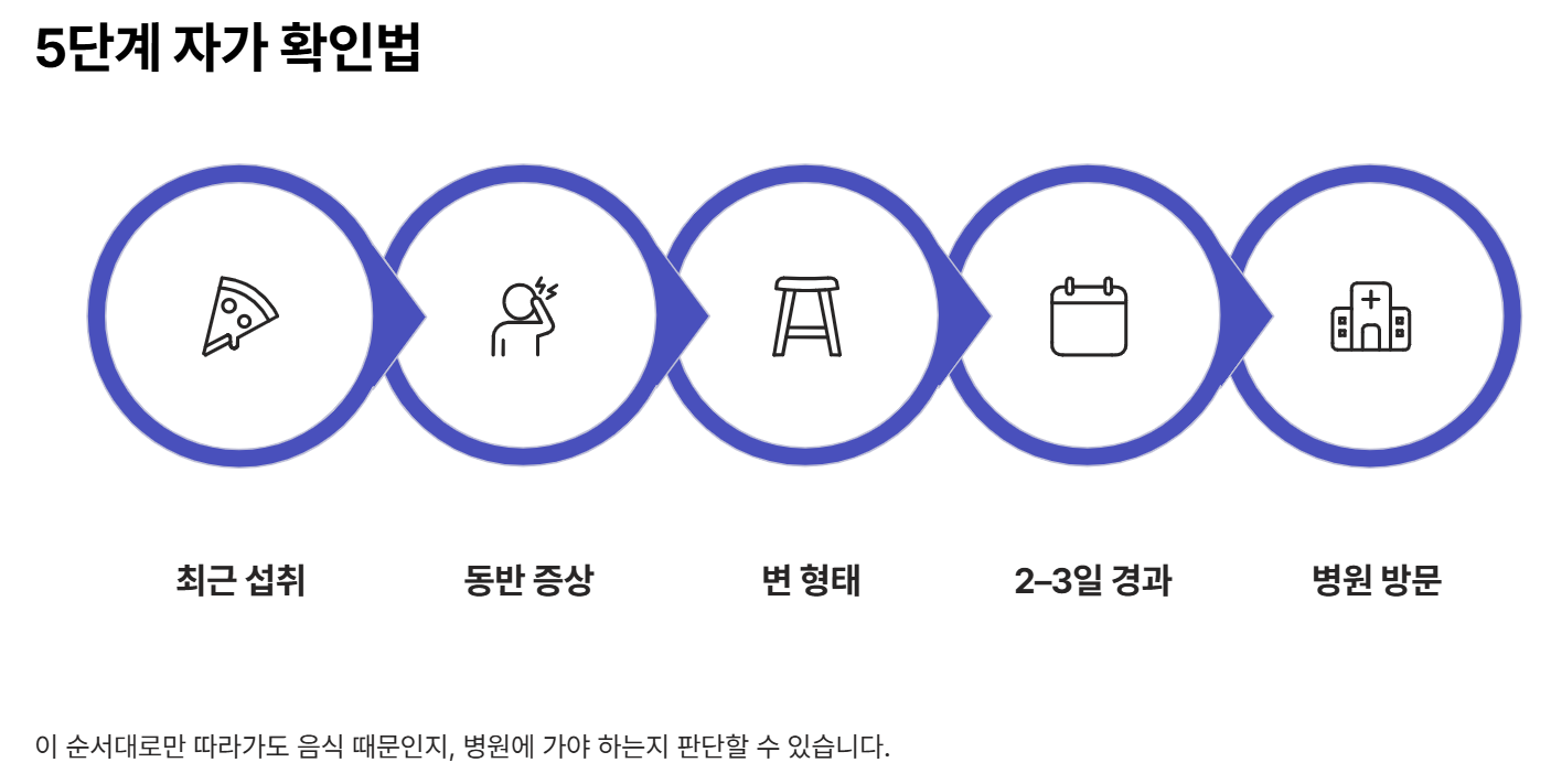 2단계: 동반 증상 확인하기 아래 증상이 함께 있다면 단순한 음식 때문이 아닐 수 있어요.