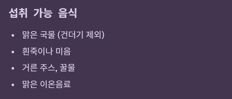 👉 이 시기에는 맑고 소화 잘 되는 음식만 섭취하는 것이 좋습니다.