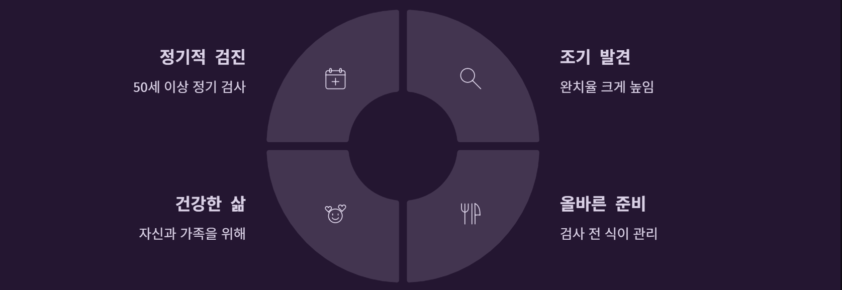 👉 정리하자면, 대장암 검사 전 올바른 준비와 식습관 관리가 정확한 진단으로 이어지고, 이는 곧 건강한 삶을 지키는 첫걸음이 됩니다.