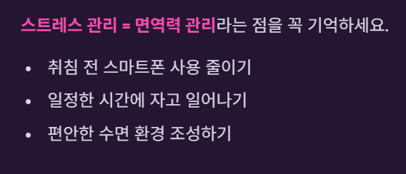 스트레스 관리 = 면역력 관리라는 점을 꼭 기억하세요.