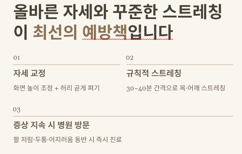 작은 자세 변화만으로도 목 통증이 크게 줄어들 수 있습니다.