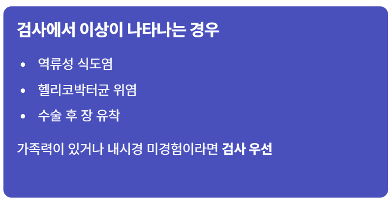 • 내시경 검사를 받아본 적 없다면 생활 습관 개선과 함께 진료도 병행