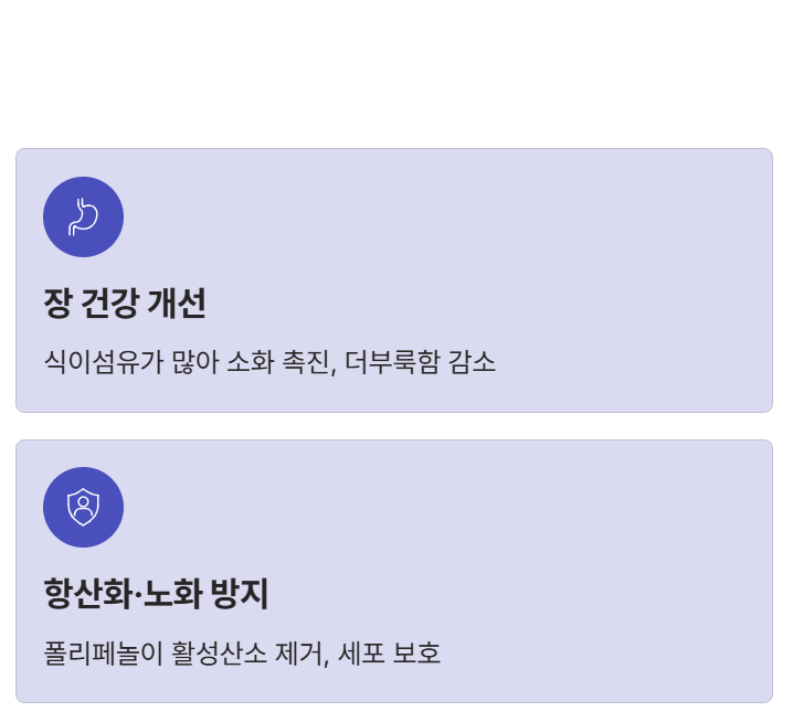 - 식이섬유가 많아 장 건강 개선 효과