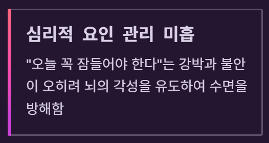 "오늘 꼭 잠들어야 한다"는 강박이 오히려 뇌의 각성을 유도하여 숙면을 방해합니다.