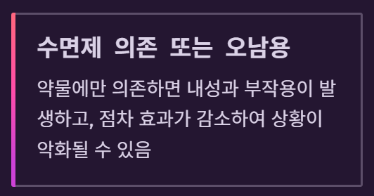 수면제에 의존하면 내성·부작용 발생, 점차 효과가 떨어집니다.