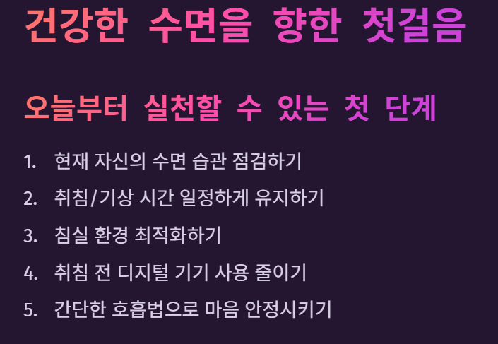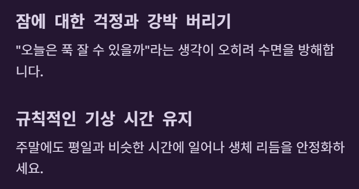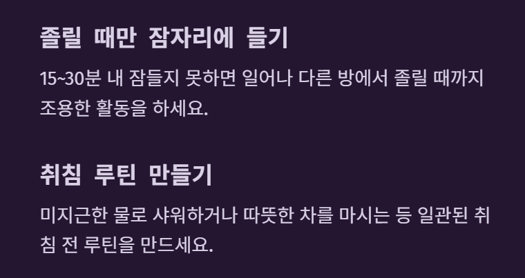 • 멜라토닌, 바레리안 뿌리 등 자연 수면 보조제도 활용 가능