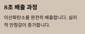 - 입술을 살짝 오므려 8초 동안 천천히 숨을 내쉽니다.