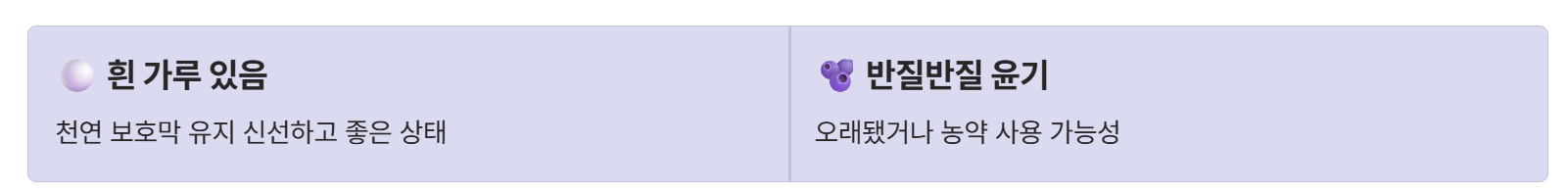 2. 표면에 흰색 블루멘(천연 왁스)이 균일하게 덮여 있는 것