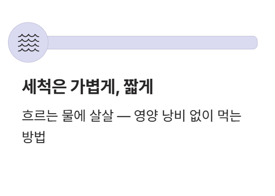 그러면서 자연스럽게 블루베리를 제대로 세척하는 방법을 찾아보게 됐습니다. 제가 직접 써봤는데, 처음에는 흰 가루를 없애겠다고 세게 비벼 씻었다가, 앞서 말씀드린 것처럼 오히려 천연 보호막을 제거하는 실수를 저질렀습니다. 올바른 방법은 생각보다 단순합니다. 흐르는 물에 가볍게 굴려 먼지 정도만 털어낸다는 느낌으로 씻으면 됩니다. 담가놓는 것도 좋지 않습니다. 안토시아닌이 수용성이기 때문에 물에 오래 담글수록 영양 성분이 녹아 나오기 때문입니다.