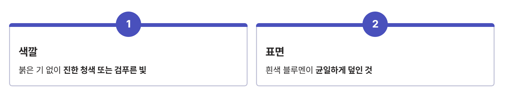 1. 껍질 색이 붉은 기 없이 진한 청색 또는 검푸른 빛을 띠는 것