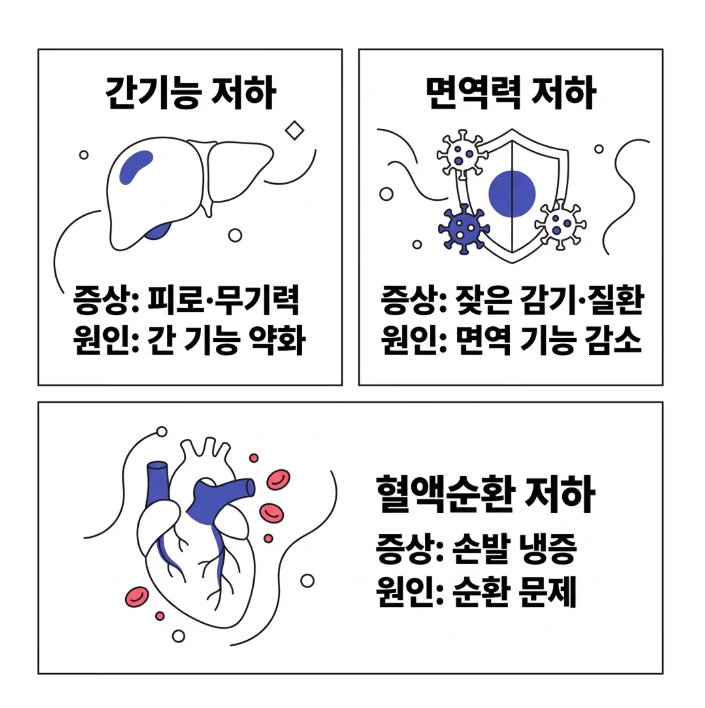 - 원인: 간 기능 약화