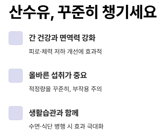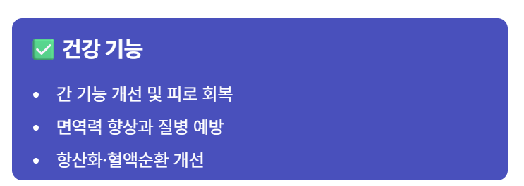 - 간 기능 개선: 피로 회복 도움