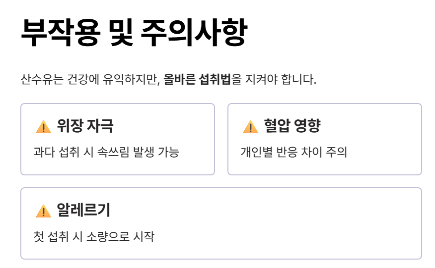 - 위장 자극: 과다 섭취 시 속쓰림