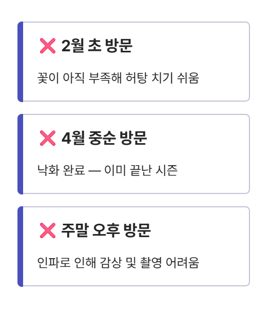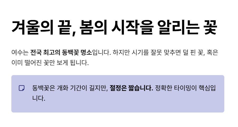 동백꽃 여행은 타이밍을 잘못 잡으면 실패하기 쉽습니다.