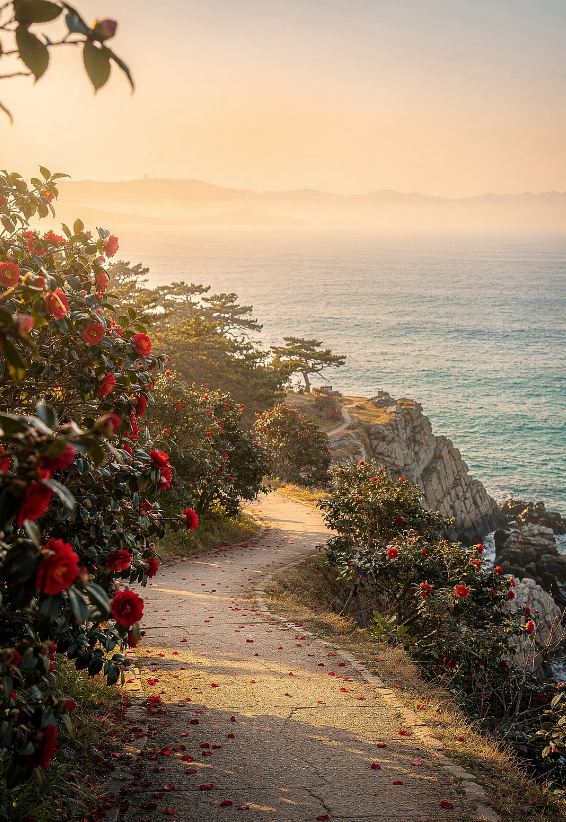 - 특징: 절경 + 동백꽃