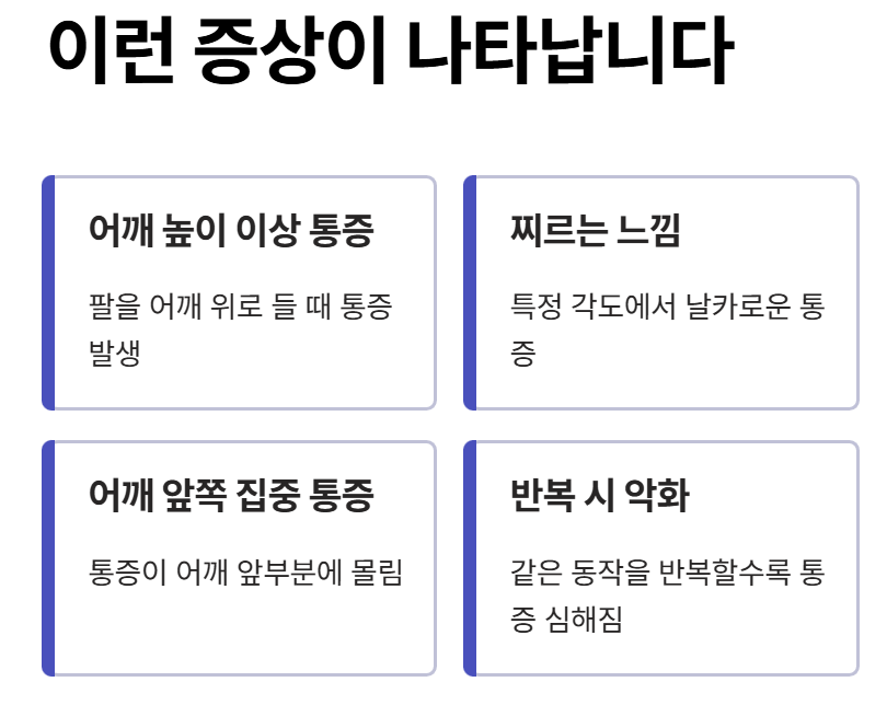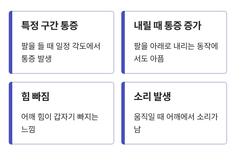 - 팔을 어깨 높이 이상 들 때 통증