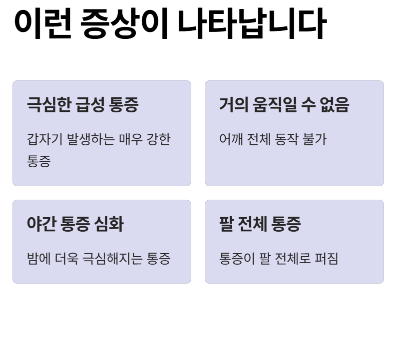 - 팔을 내릴 때 통증 증가