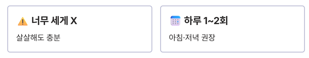 - 하루 1~2회, 아침 저녁으로 사용하는 것이 적당합니다.