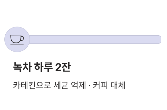 특히 녹차에 풍부한 카테킨(catechin)이라는 성분은 강력한 항산화제로 알려져 있습니다. 카테킨은 구강 내 세균을 억제할 뿐 아니라 휘발성 황 화합물의 생성 자체를 줄여준다고 합니다. 실제로 한 연구에서는 녹차로 입을 헹구기만 해도 4주 후 입냄새가 유의미하게 감소했다는 결과가 나왔습니다(출처: 대한의학학술지편집인협의회).