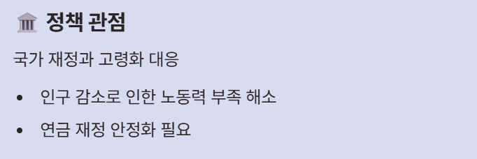 첫 번째는 정책 관점입니다. 국가 재정과 고령화 대응 문제입니다.