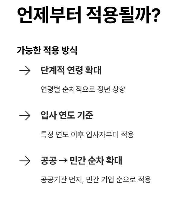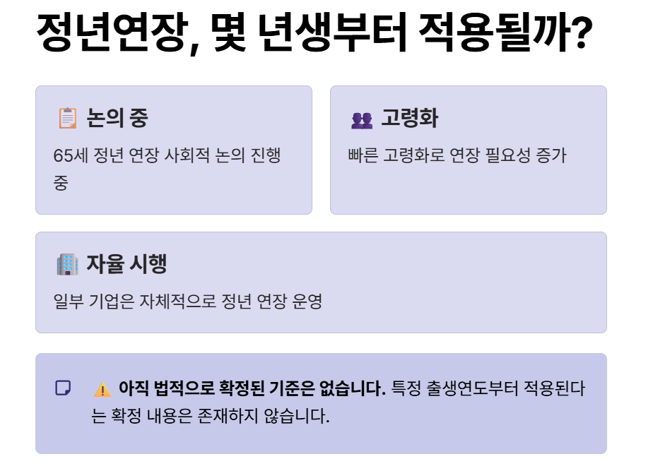 많은 사람들이 가장 궁금해하는 부분은 “정년연장이 몇 년생부터 적용되는가”입니다.