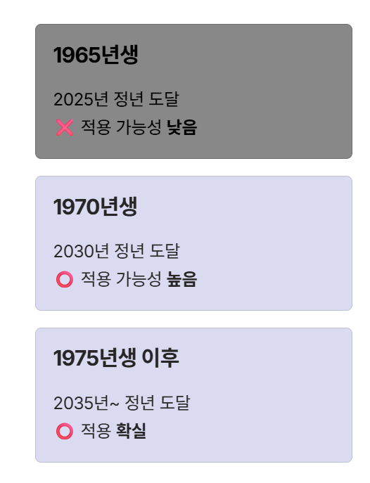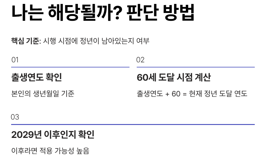 정년연장에서 가장 중요한 것은 “내가 적용 대상인지”입니다.
