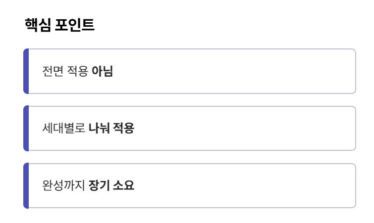 • 한 번에 전면 적용 아님