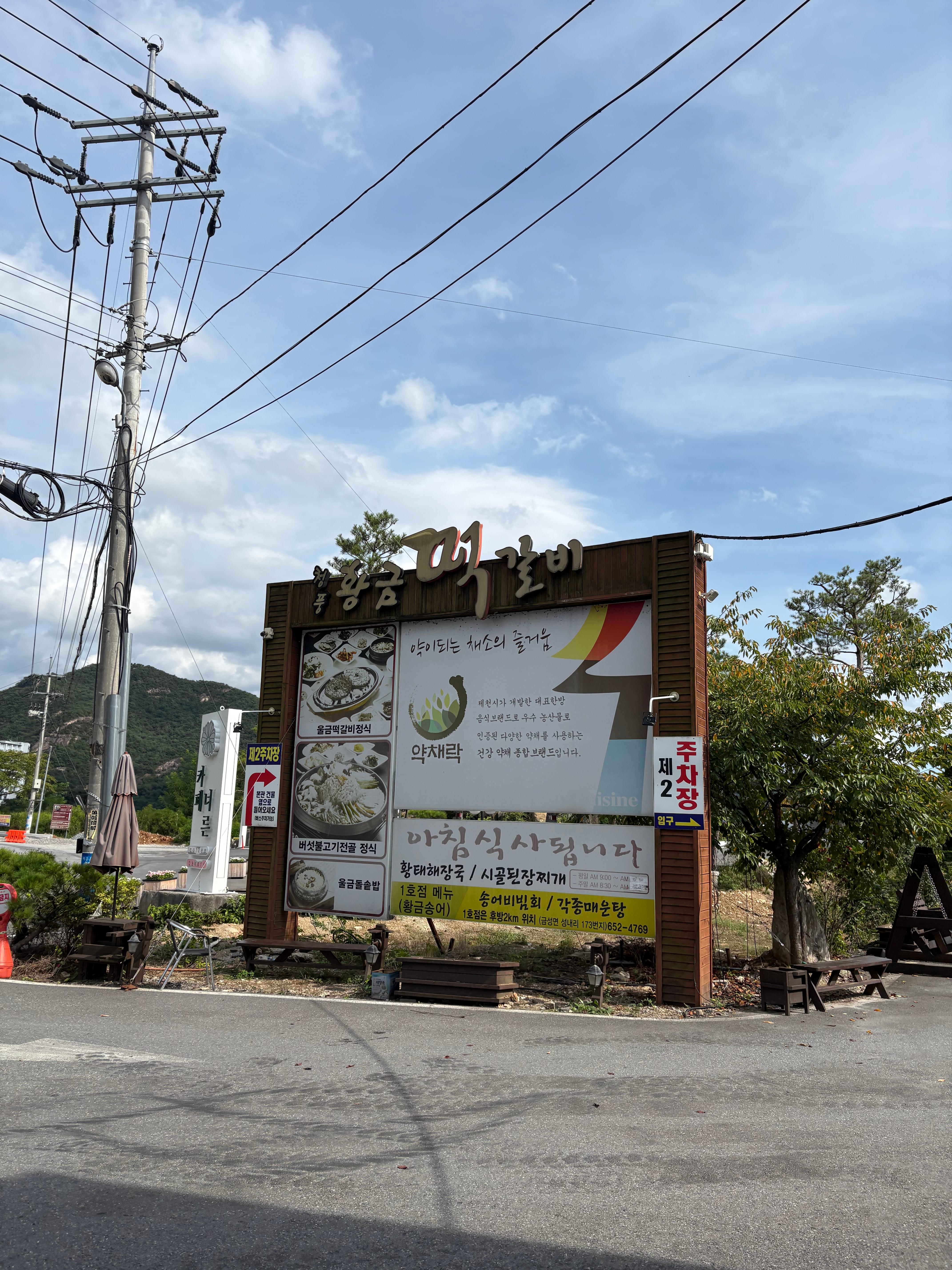 청풍황금떡갈비 주차장은 굉장히 넓습니다. 전면부 뿐만 아니라, 가게 뒷편에도 주차공간이 넉넉해요. 뿐만 아니라 청평호를 보러 오는 관광객이 많기 때문에 대형버스 전용 주차공간도 있었습니다.