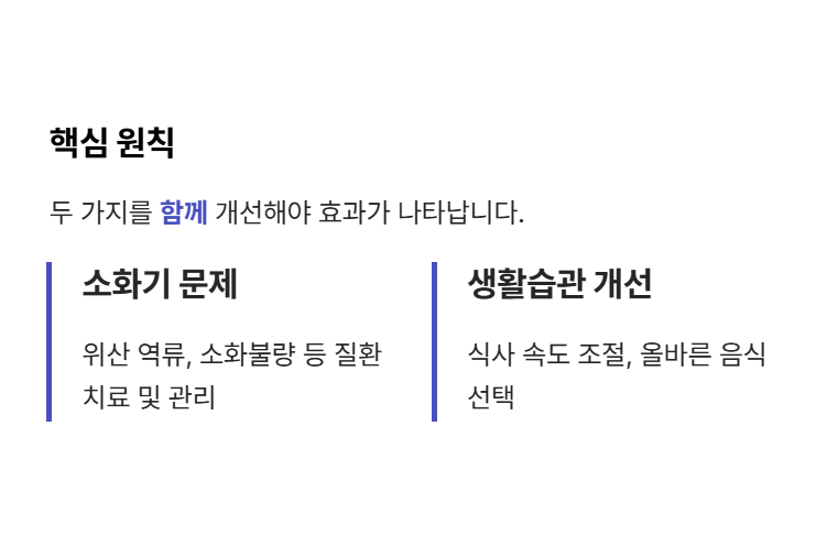특히 식사 후 눕거나 과식할 때 증상이 심해집니다.