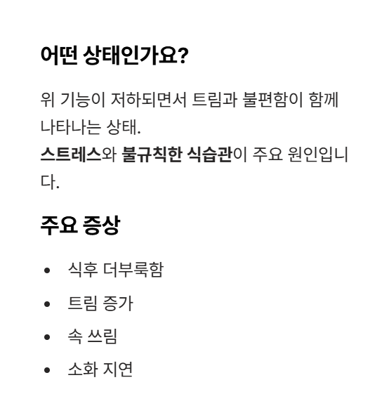 소화불량은 위 기능이 저하되면서 트림과 불편함이 함께 나타나는 상태입니다.
