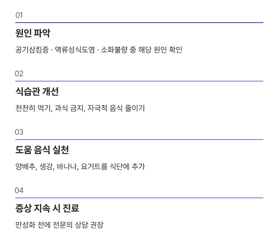 특히 급하게 식사하거나 탄산음료를 자주 섭취하는 경우 많이 발생합니다.