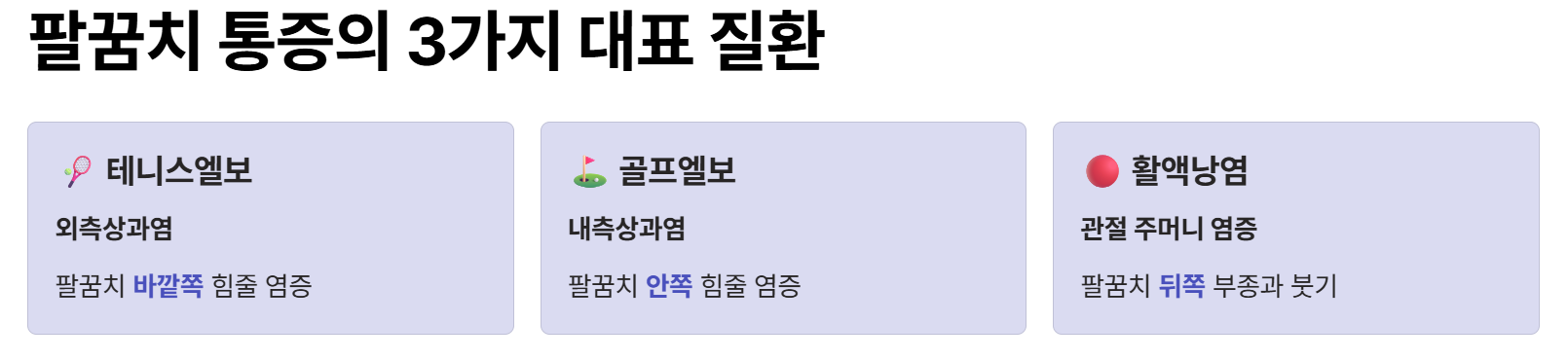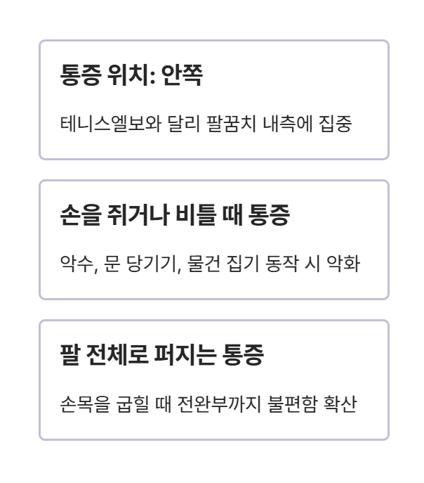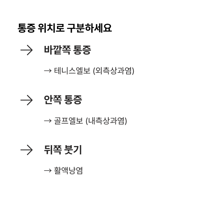 테니스엘보와 달리 통증 위치가 안쪽이라는 점이 핵심입니다.