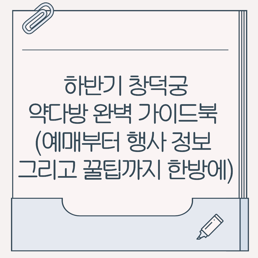 창덕궁 약다방은 창덕궁 휴궁일인 매주 월요일에는 운영하지 않습니다. 하반기 행사는 2025년 10월 1일부터 10월 23일까지 진행되며, 세부 일정은 변동될 수 있으니 방문 전 반드시 공식 안내를 확인하세요.