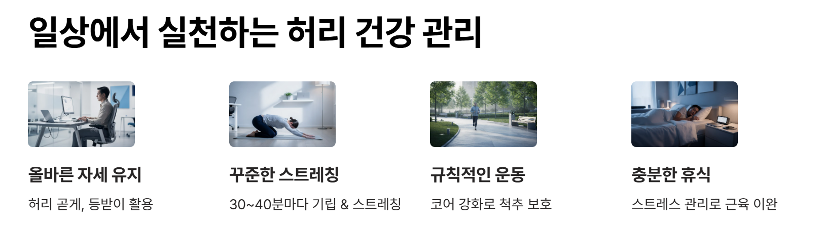 생활 습관을 개선하는 것만으로도 허리 통증이 완화되는 경우가 많습니다.