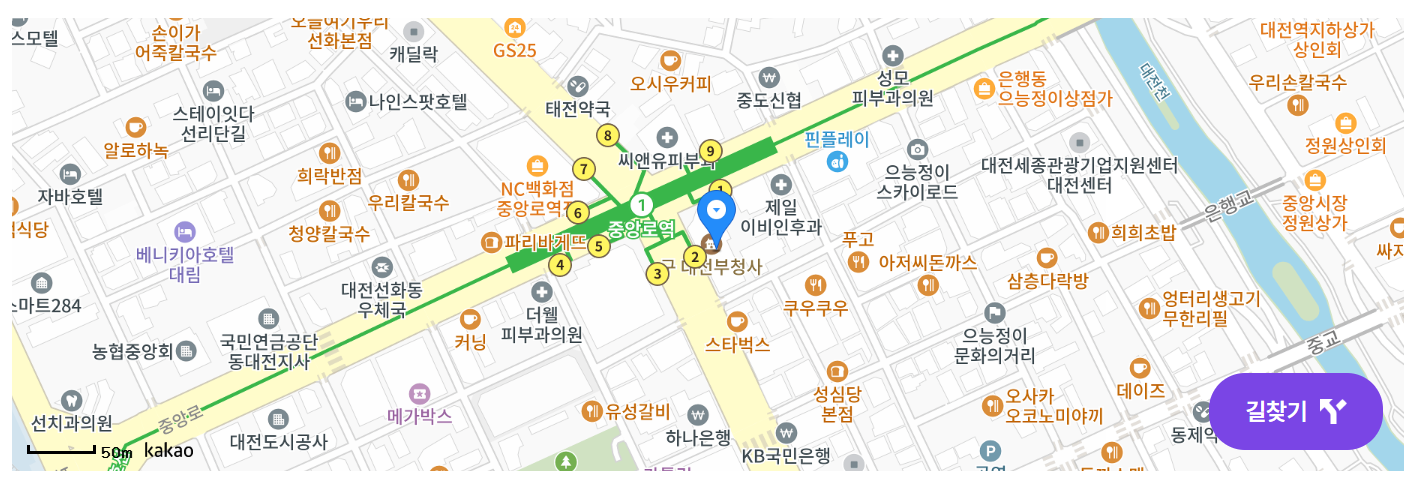 - 대중교통 이용: 지하철 중앙로역 및 대전역 인접, 접근성 우수합니다.